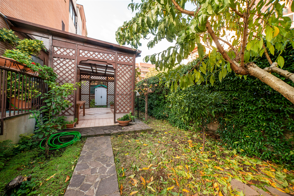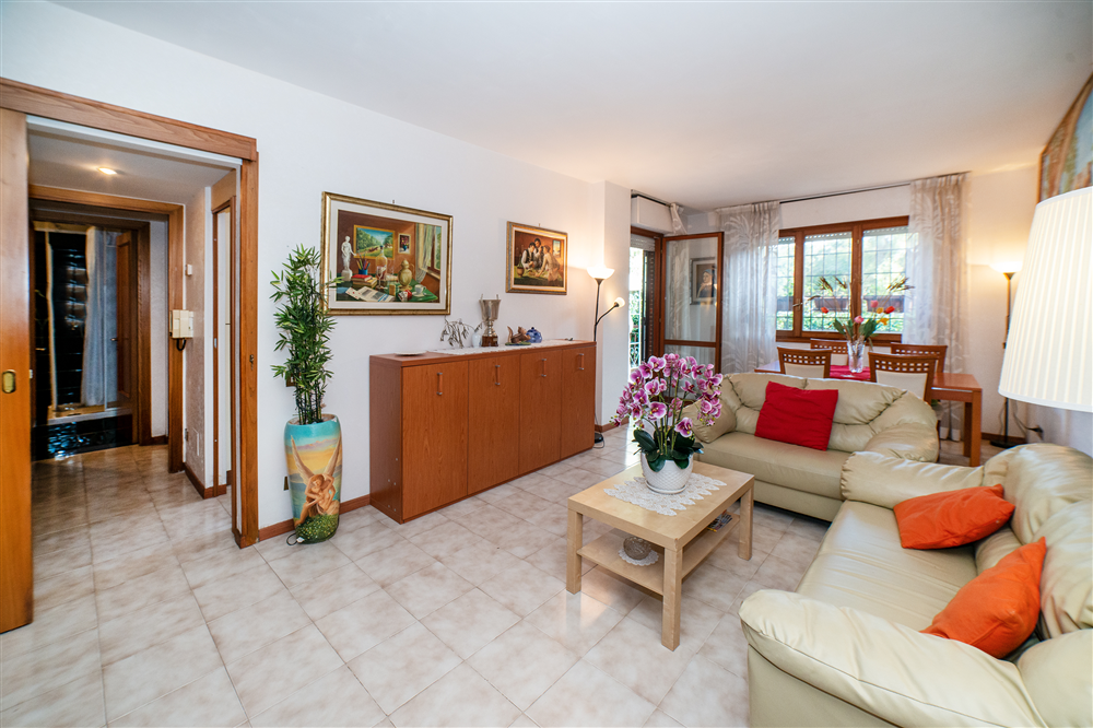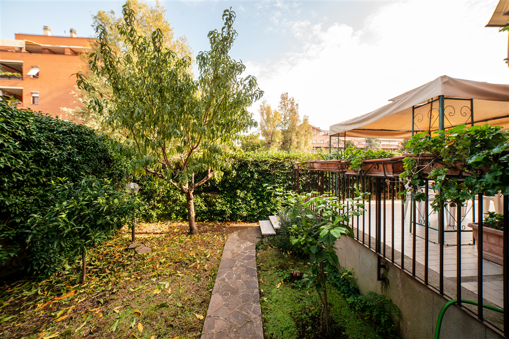 Incastonato nel verde tra via Laurentina e via Cristoforo Colombo, a pochi minuti dai centri commerciali Il Maximo ed Euroma 2, Realista Group propone in vendita un elegante appartamento trilocale di 97 mq con ampia terrazza e giardino, luminoso e versatile, ideale sia come abitazione principale sia come studio professionale grazie al doppio ingresso, di cui uno indipendente.
