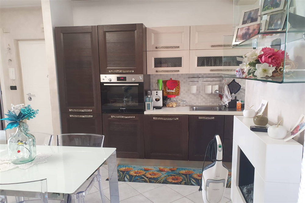 L’appartamento è composto da un luminoso salone con angolo cottura, due spaziose camere da letto, un bagno moderno e un pratico angolo lavanderia. La recente ristrutturazione ha valorizzato gli spazi interni rendendo l’immobile funzionale, accogliente e pronto da abitare.